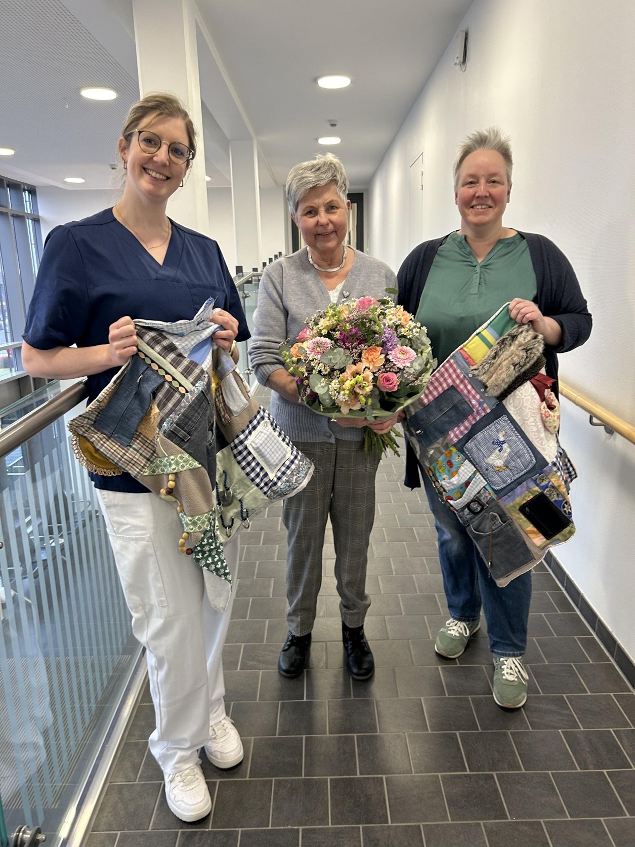Um weitere Decken anfertigen zu können, benötigt sie Stoffspenden, alte Jeans usw., außerdem Gegenstände wie Reißverschlüsse, Schlüssel, Metallringe, Murmeln, etc. Auch über Unterstützung beim Nähen freut sie sich gemeinsam mit den Pflegeexpertinnen Demenz und Delir, Marie Finke am Klinikstandort Nottuln, und Wiebke Rode in Coesfeld. Diese sind unter den Telefonnummern 02541 89-48862 bzw. 02502 220-47868 erreichbar.